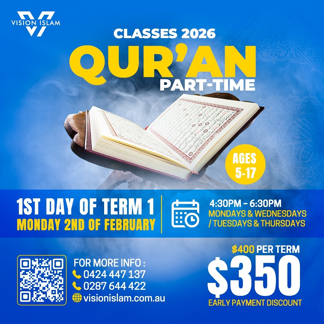 - QUR’AN (FULL-TIME) – Male & Female (4-80) – Mon to Fri: 8:00 AM – 1:00 PM
